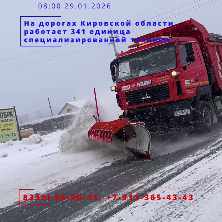 Дорожные службы Кировской области работают в круглосуточном режиме. Сегодня, 29 января, на дорогах региона задействовано 341 единица специализированной техники.