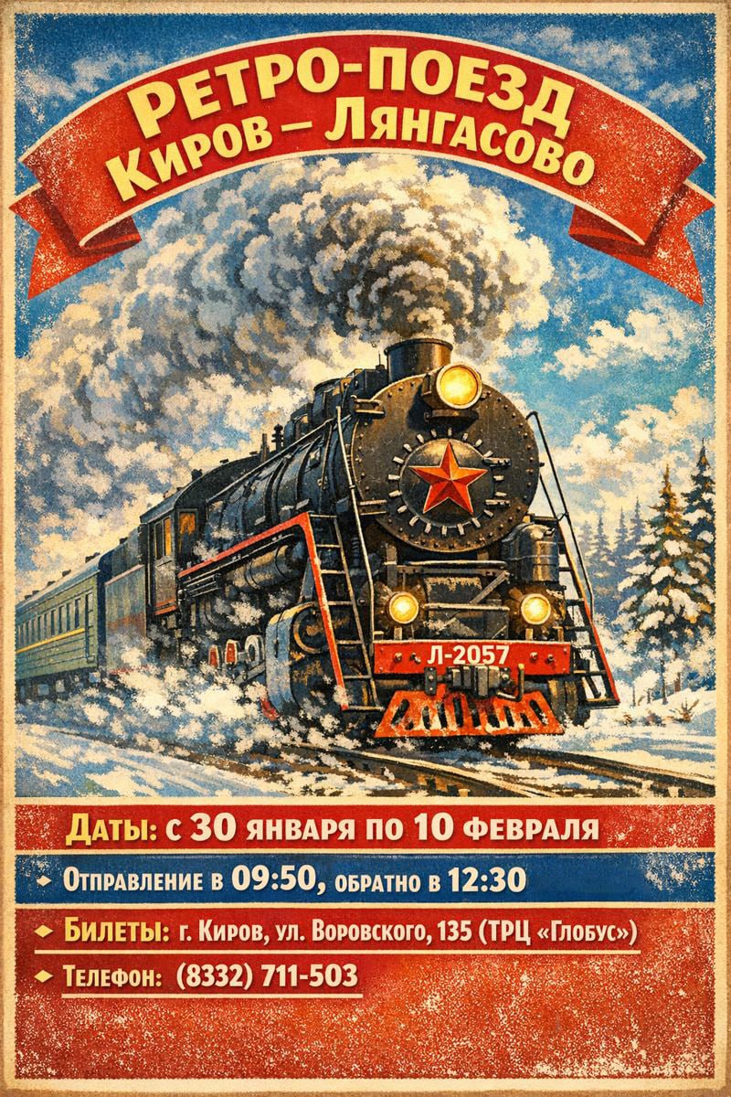 Ретро-поезд возвращается!. С 30 января по 10 февраля по маршруту Киров Котласский — Матанцы — Лянгасово начнет ходить очередной туристический поезд