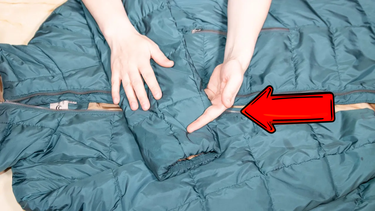 - Застегнуть молнии, кнопки и вывернуть изделие наизнанку так меньше изнашивается верхний материал и предотвращается выпадение пуха.