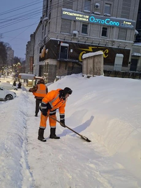 Сегодня днем работу продолжают 135 специализированных машин и 118 рабочих. Кроме того, продолжается вывоз снега: за прошедшую ночь подрядчики убрали с улиц 15 тыс. кубометров снежных масс.