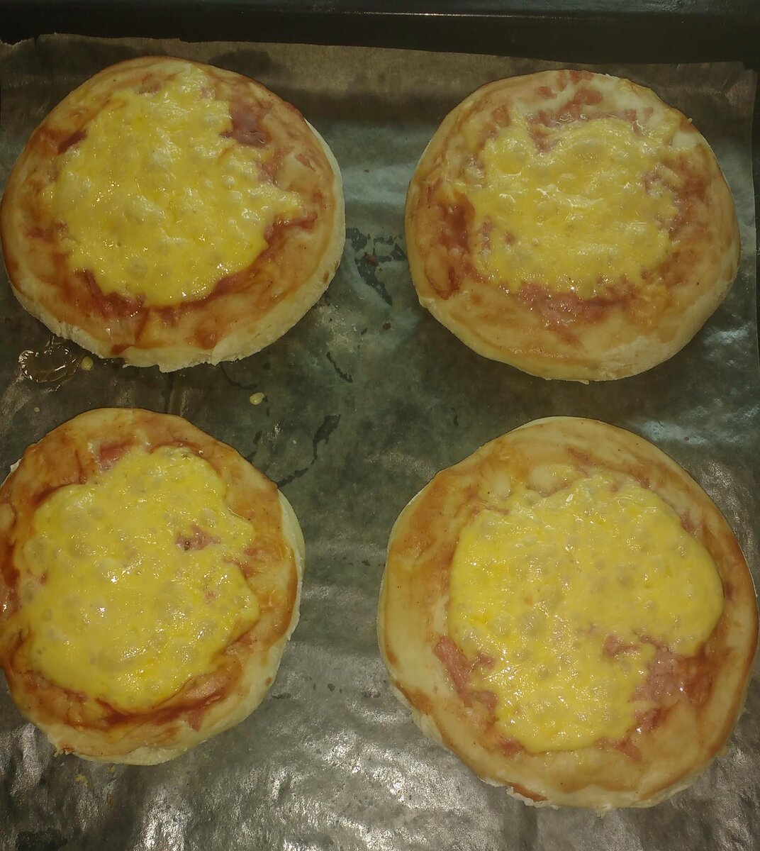 За 5 минут до конца выпечки можно смазать края пиццы кетчупом или желтком для красивой корочки. В результате получаются маленькие пиццы, которые просты в приготовлении и порадуют любого ребенка!