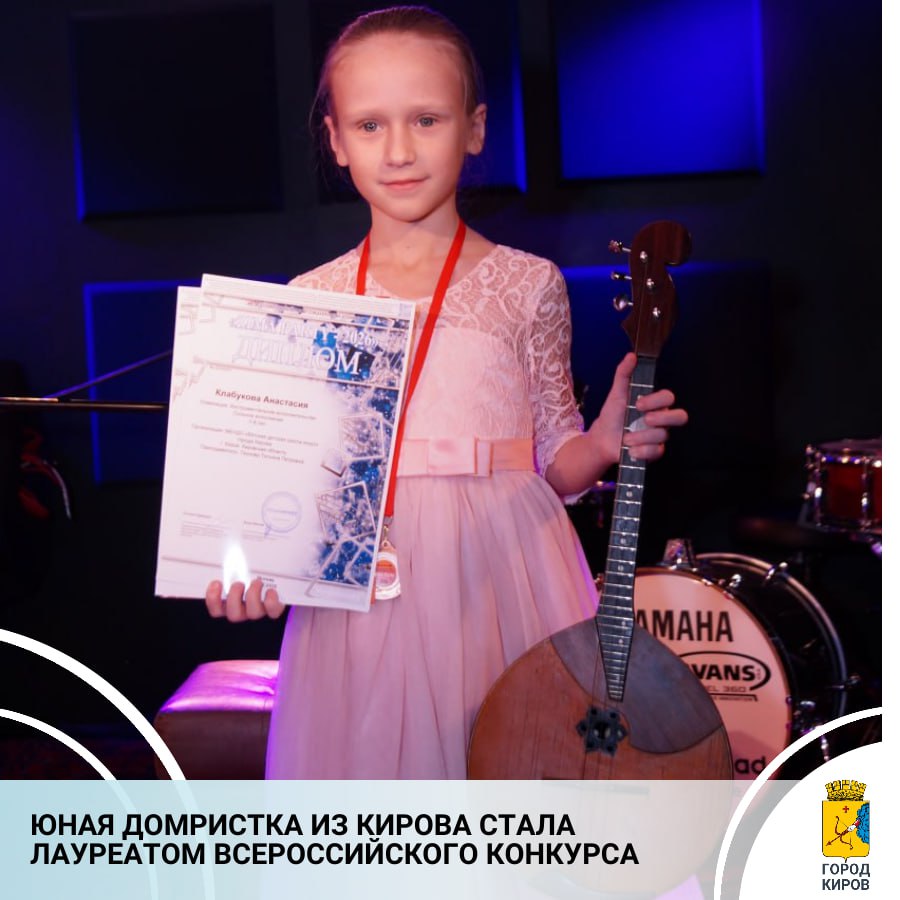 Город Киров представила учащаяся Вятской детской школы искусств по классу домры Анастасия Клабукова. По итогам конкурса Анастасия завоевала диплом лауреата 2 степени.