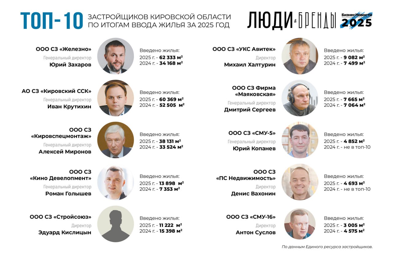«Люди и Бренды-2025»: топ-10 застройщиков по вводу жилья.