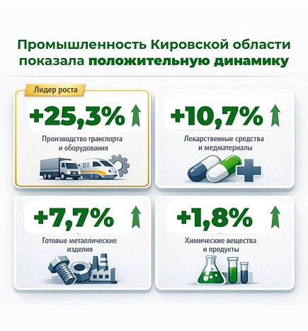 На четверть рост — в категории «Производство транспорта и оборудования». В категории «Лекарственные средства и медматериалы» — 10,7%. Отличные результаты также показали кировские предприятия в категориях «Готовые металлические изделия» и «Химические вещества и продукты».
