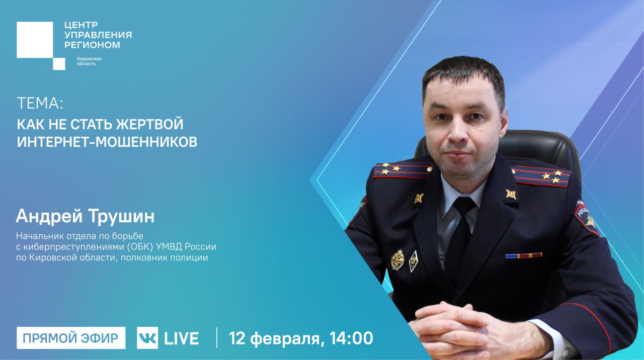 12 февраля в 14:00 в прямом эфире на площадке ЦУР Кировской области поговорим о самых распространенных схемах обмана, к которым сейчас прибегают интернет-мошенники. А также о том, как защитить свои данные и накопления.