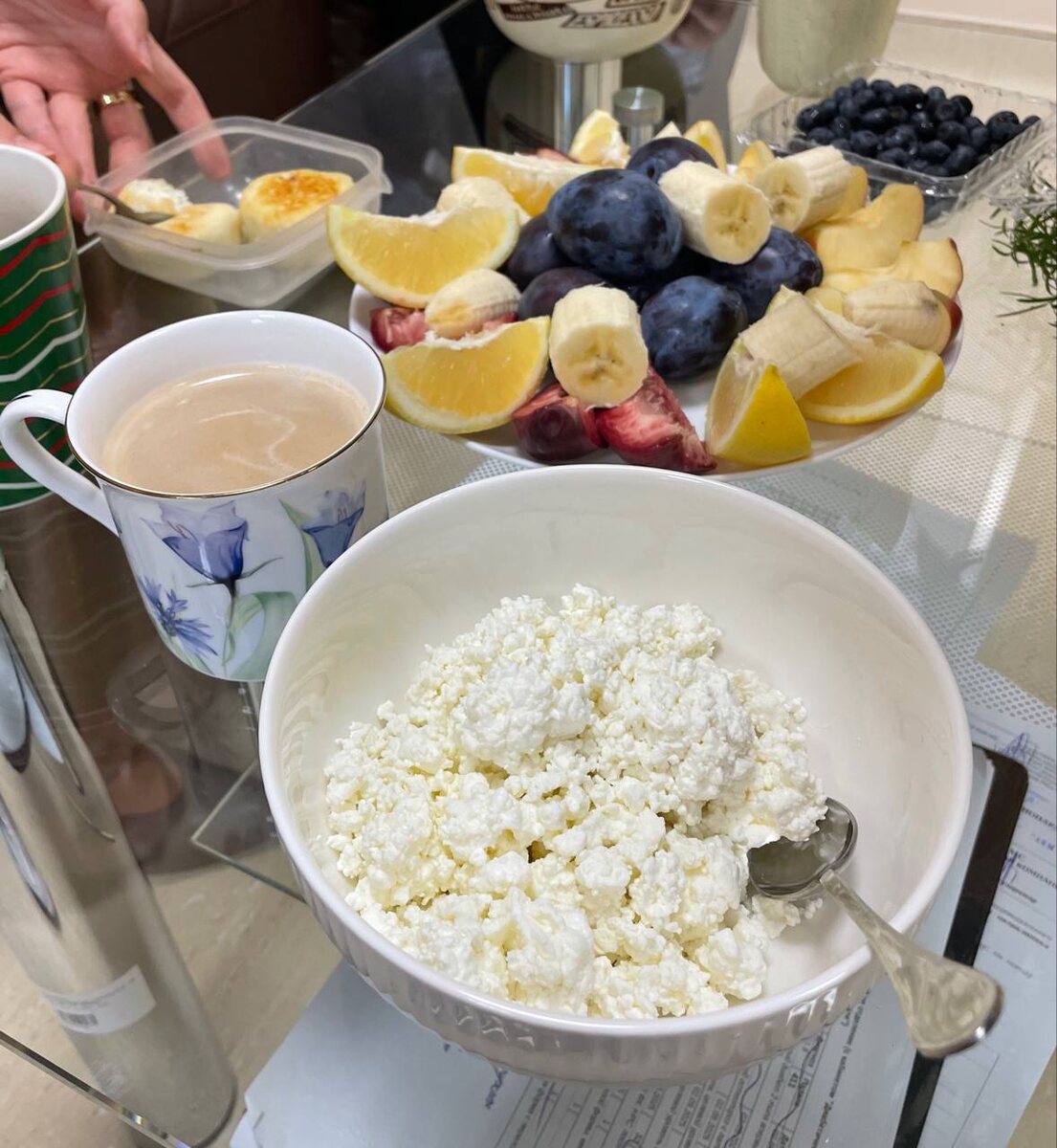 Сегодня начался с замечательного завтрака с коллегами. Такой утренний ритуал не только поднимает настроение, но и помогает создать крепкие связи в команде. На обед было предложено необычное блюдо — язык в сочетании со спиральными пастами (некоторые остались несъеденными), а для десерта — сочные сливы. А завершала день порция вареников с нежным картофелем и ароматными грибами, запеченная индейка, свежее яблоко и пирог с творогом и ягодами. Здесь же, за радушным столом, гостья — пара слив — ждала своего часа.