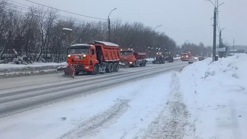 Подрядчики еще до осадков обработали дороги и тротуары противогололедными материалами. Затем сформировали колонны для максимально широкой очистки.