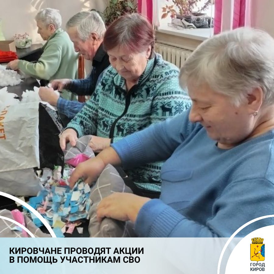 А в центре местной активности на ул. Лесозаводская, 10 волонтеры формируют марлевые салфетки для полевых госпиталей, вяжут коврики и изготавливают мягкие удобные подушки для бойцов в блиндажах.