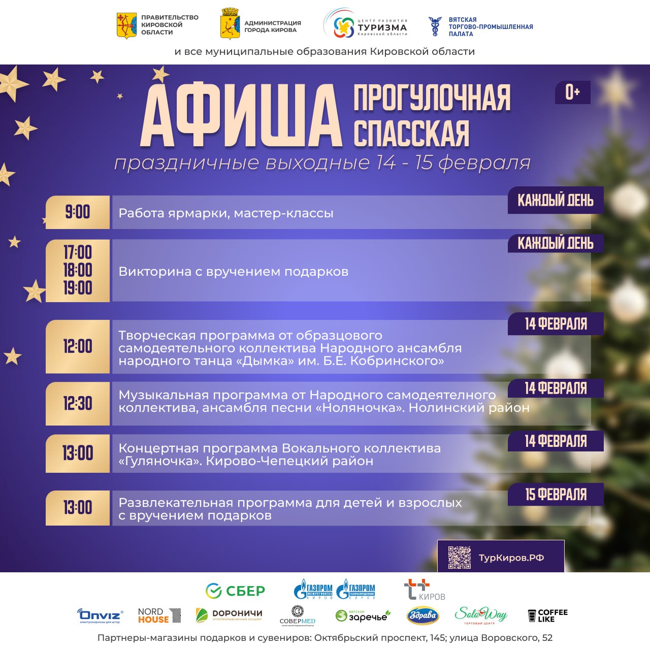 Публикуем афишу мероприятий, которые пройдут в эти выходные, 14-15 февраля, на улице Спасской в Кирове.
