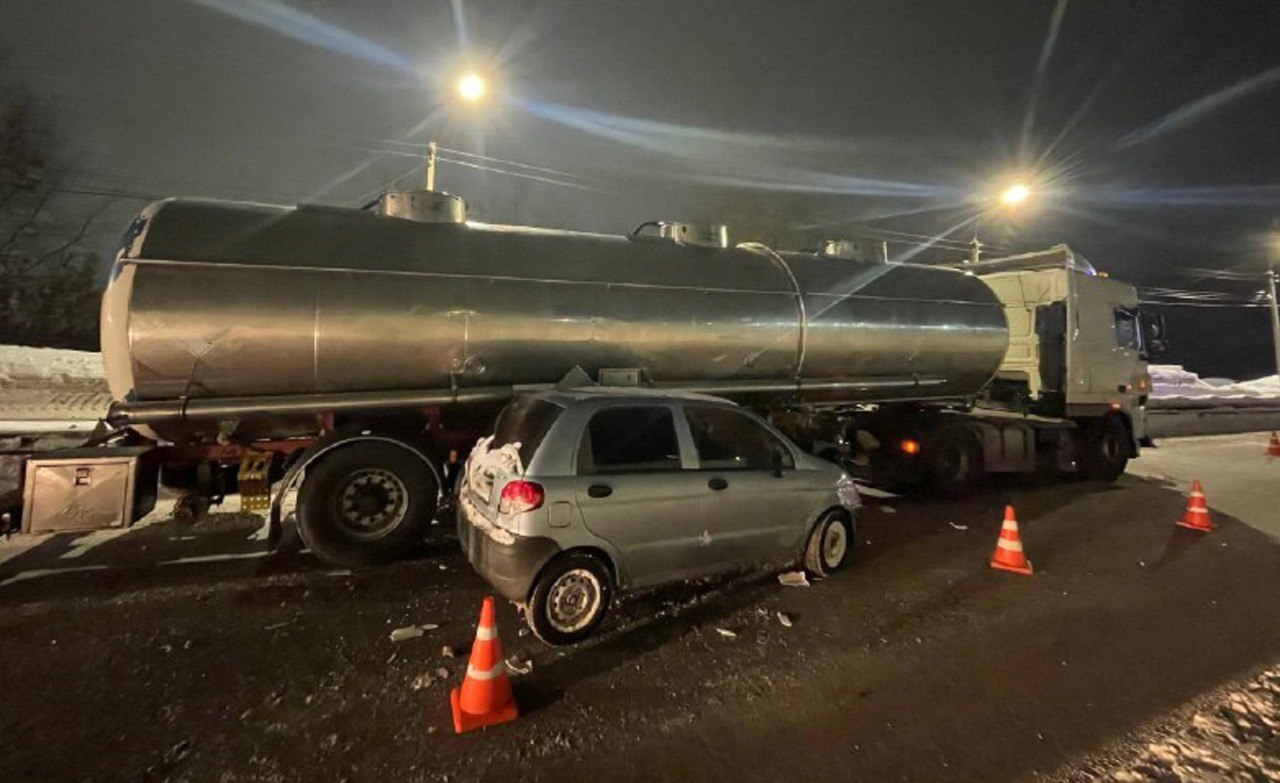 По данным ГАИ, столкнулись автомобиль «Дэу Матиз» под управлением 26-летней девушки и «ДАФ» под управлением 49-летнего мужчины. В результате водитель автомобиля «Дэу Матиз» получила травмы.