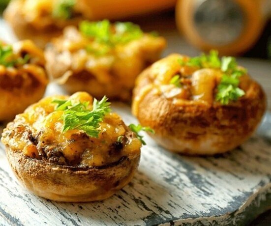 Фаршированные шампиньоны — это блюдо, которое удачно объединяет простоту приготовления и изысканный вкус. Сочный куриный фарш, нежные шампиньоны и ароматная зелень превращают это угощение в кулинарный шедевр, который порадует как домашних, так и гостей на праздничном столе.