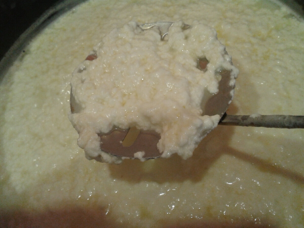 Когда творожные сгустки готовы, аккуратно снимите их на сито, выстланное хлопковым полотенцем. Дайте стечь сыворотке. Важно помнить: сыворотка — незаменимый помощник в кухне, не выбрасывайте ее!