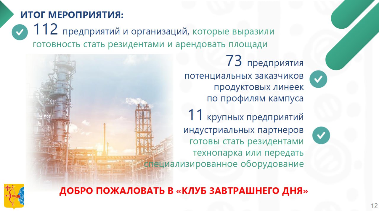 Мы пригласили предприятия региона стать сопричастными к процессу создания кампуса и его дальнейшей деятельности, предложив им вступить в «клуб завтрашнего дня», — где они получат гарантированную поддержку государства, и мы вместе построим инновационный контур региона.