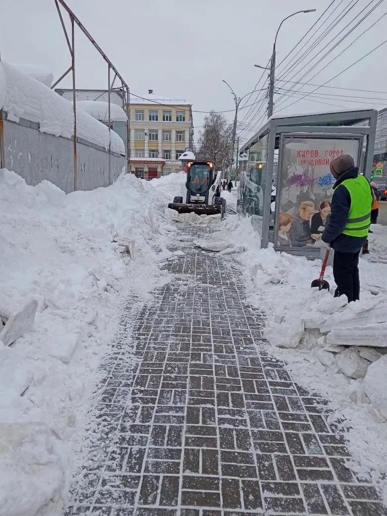 В Кирове круглосуточно продолжаются работы по содержанию улично-дорожной сети. При повышении температуры воздуха подрядчики очищают тротуары до основания. Так, сегодня с помощью спецтехники снег был убран с пешеходных зон на участках улиц Воровского, Владимирской, Всесвятской, Азина, Милицейской, Пролетарской и других.