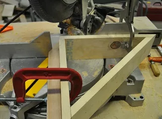 Необходим системой для надежной фиксации заготовки. Для этого можно использовать ещё один брусок, прикреплённый к основанию, который будет служить упором. Также рекомендуется сделать рычажный прижим для предотвращения подъема заготовки во время пиления.