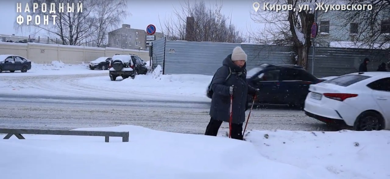 Ближайший переход — на ул. Жуковского, 8, но по чётной стороне нет тротуаров. Другой вариант — площадь ХХ партсъезда, до неё более 600 метров. Люди рискуют и перебегают дорогу прямо у самолёта. За полчаса активисты Народного фронта насчитали 13 нарушителей.