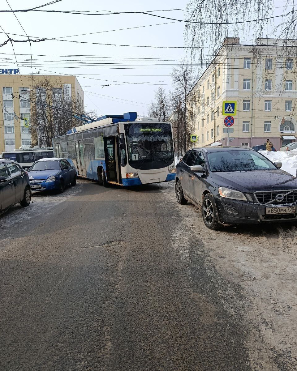 27 февраля произошёл сбой в графике движения троллейбусов маршрута №7. Неправильно припаркованные автомобили заблокировали проезд по улице Красноармейской.