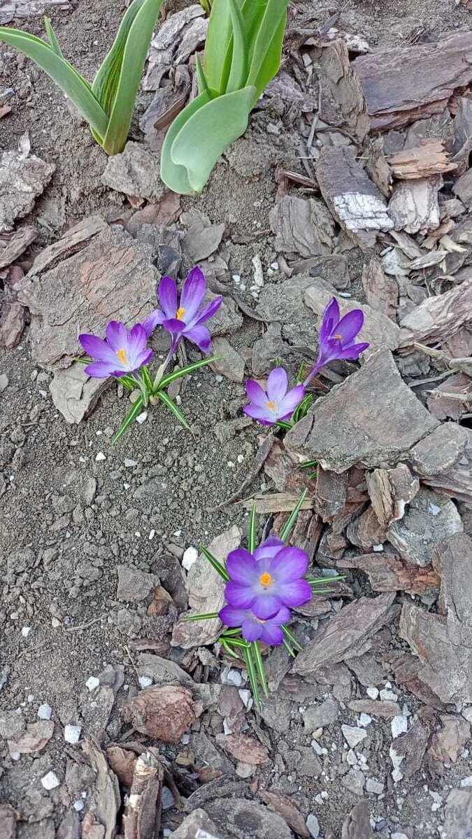 Крокусы: Пока представленные только сиреневыми и полосатыми. Осенью 2022 года удивили цветением и стали основой для размножения. Планы включают расширение сортов с желтыми, белыми и полосатыми крокусами, чтобы весна расцвела яркими красками.