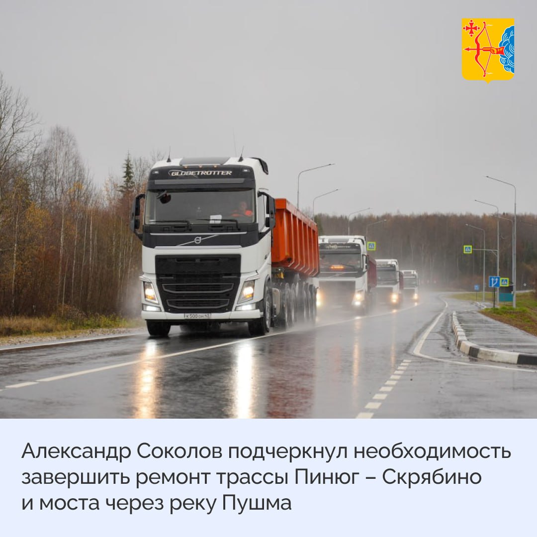Александр Соколов подчеркнул важность соблюдения сроков и призвал обеспечить ремонт стратегической дороги на северо-запад области, в том числе завершить реконструкцию автодороги Пинюг – Скрябино и моста через реку Пушма на ней, а также строительство тоннеля под Транссибом в Нововятском районе Кирова в плановые сроки.