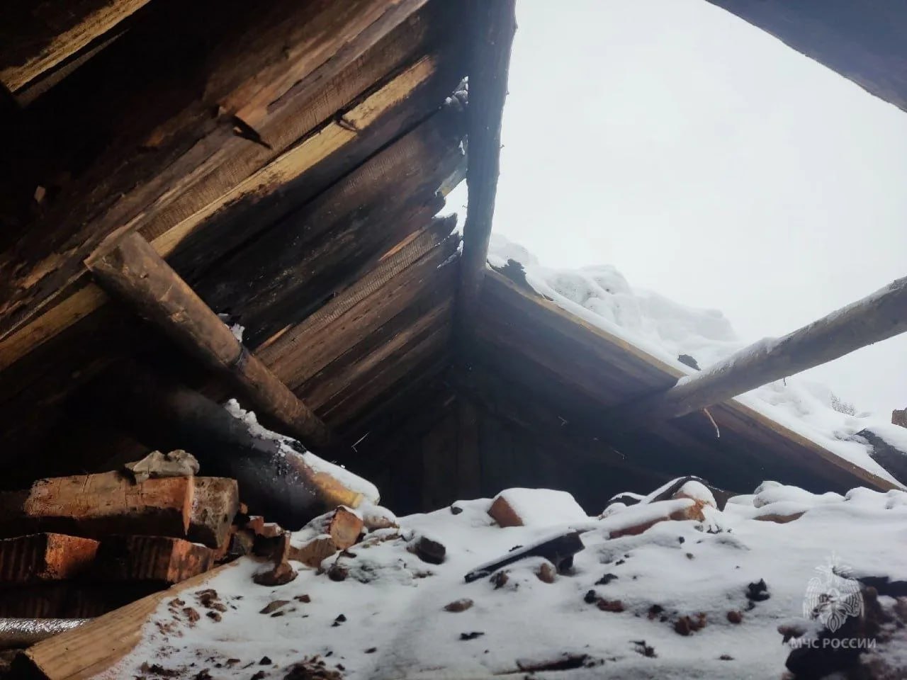 Во время топки частной бани с кровли неожиданно сошёл снег.