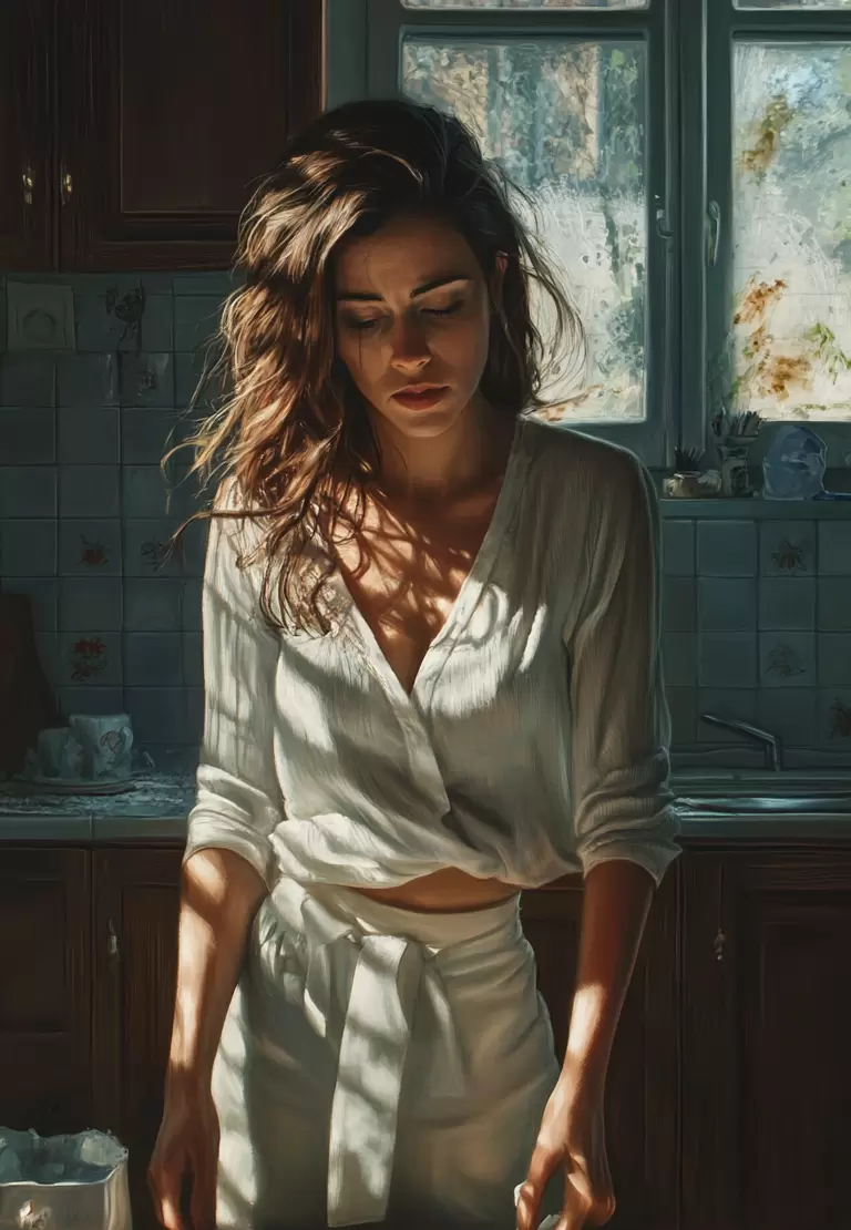 В тихом доме на кухне раздался треск: свадебная тарелка разлетелась на мелкие кусочки. Катя стояла среди осколков, олицетворяя то разрушение, которое затрагивало не только фарфор, но и её семью.