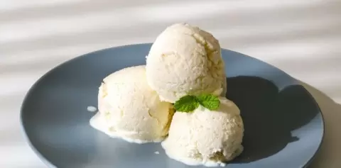- Мороженое на кокосовом молоке — насыщенное и сливочное, отлично подходит под шоколад, ягоды или бананы.