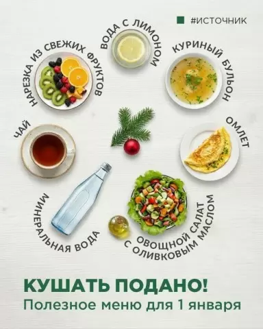 - Остаться в стороне от привычных блюд: Первым приёмом пищи не стоит делать остатки с новогоднего стола.