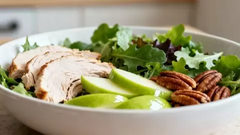 Свежий салат с индейкой, яблоком и пеканом становится настоящим хитом для легкого ужина.