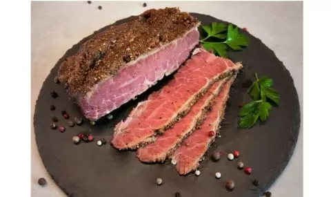 Говяжье пастрами представляет собой вкусный мясной деликатес с насыщенным ароматом и уникальной текстурой, получаемой через маринование, копчение и запекание. Обычно это блюдо готовят из говяжьей грудинки, но также можно использовать и другие части туши. Пастрами часто подается в виде нарезки или используется для создания ароматных сэндвичей.