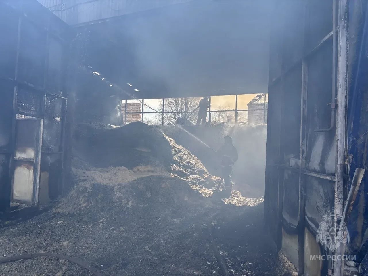 ЧП случилось в д. Стулово в 8 часов утра. Загорелась кровля цеха над помещением, где складировался опил.