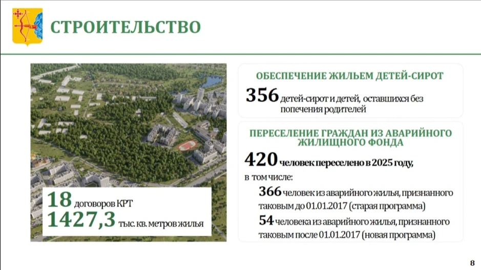 В целом по старой и новой программе мы переселили в 2025 году 410 человек. Особое внимание уделяется обеспечению жильем детей-сирот и детей, оставшихся без попечения родителей. За 2025 год жилые помещения предоставлены 356 детям, в том числе в городе Кирове – 301 человеку. Все свои обязательства по обеспечению детей-сирот жильем Правительство Кировской области выполняет в полном объеме.
