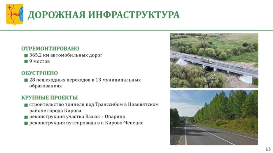 В 2025 году начато строительство тоннеля под Транссибом в Нововятском районе города Кирова, работы ведутся в соответствии с графиком. Завершена реконструкция участка Вазюк – Опарино, заключены контракты на реконструкцию участка Пинюг – Скрябино и моста через реку Пушма.