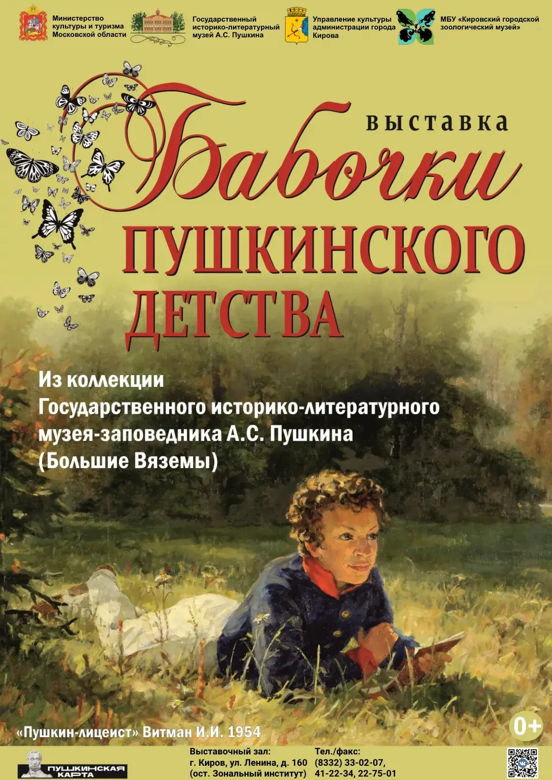 30 апреля в 14.00 в Кировском городском зоологическом музее (ул. Ленина, 160) откроется выставка «Бабочки пушкинского детства». Это совместный проект с Государственным историко-литературным музеем-заповедником А. С. Пушкина.