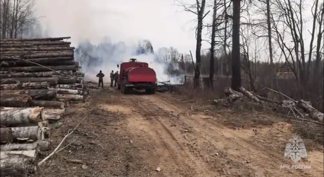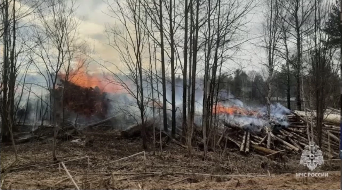 В Кировской области тушили крупный пожар на бывшей лесобазе