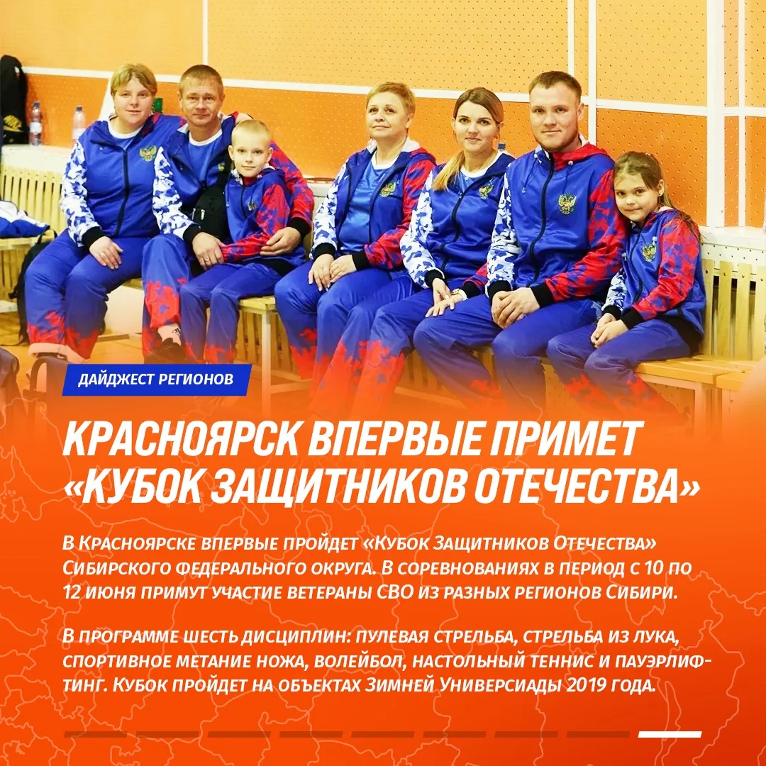 На этот раз спортивные новости Московской, Волгоградской, Кемеровской, Ульяновской, Тамбовской, Рязанской и Кировской областей, а также Красноярского края