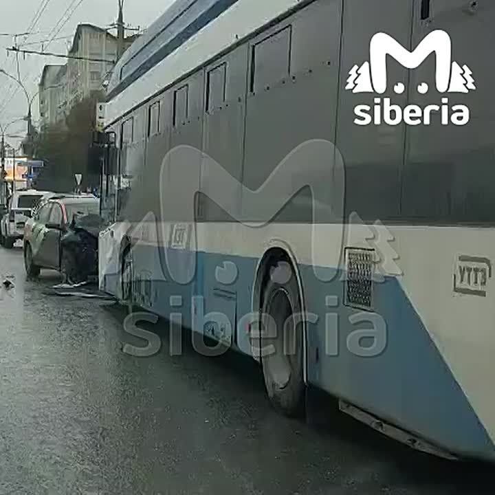 В 300 метрах от места, где водитель влетел в остановку.Очевидцы рассказали Mash Siberia, что пассажиры достали из салона авто двух женщин лет 30-ти без сознания и грудничка. Их госпитализировали.Люди в троллейбусе от удара попадали, но не получили...